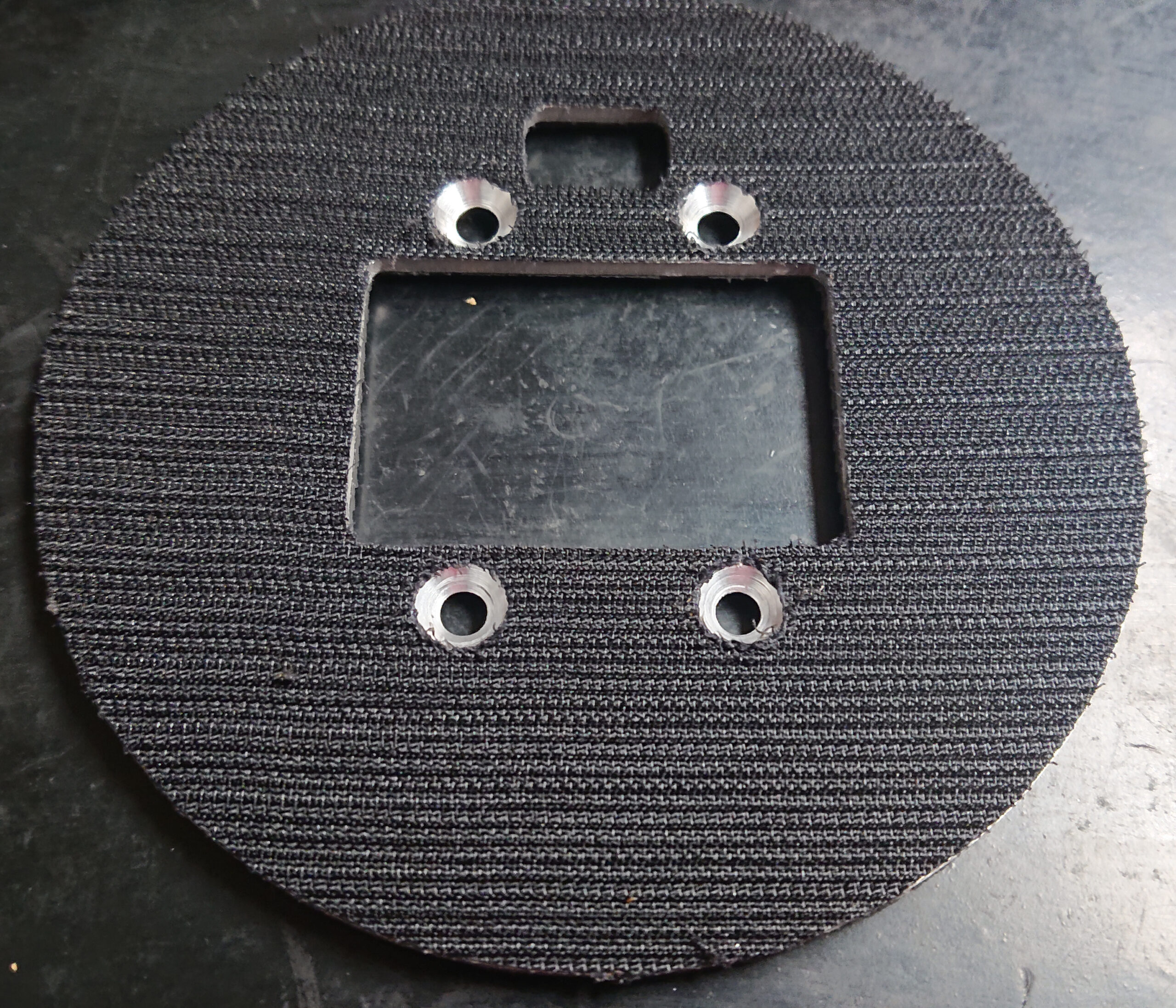 Eine doppelseitige Befestigungsplatte mit Gummi auf der einen und original Velcro auf der anderen Seite