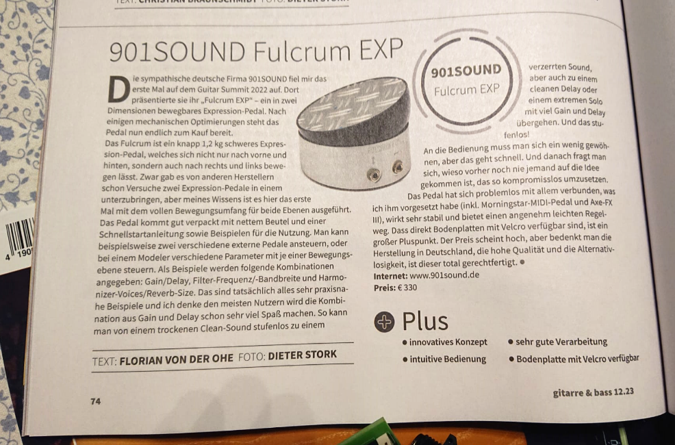 Vor ein paar Tagen kam die neue Ausgabe der Zeitschrift „Gitarre&Bass“ raus. Und siehe da, dieses renommierte deutsche Blatt hat einen schönen Testbericht über das Fulcrum EXP geschrieben!